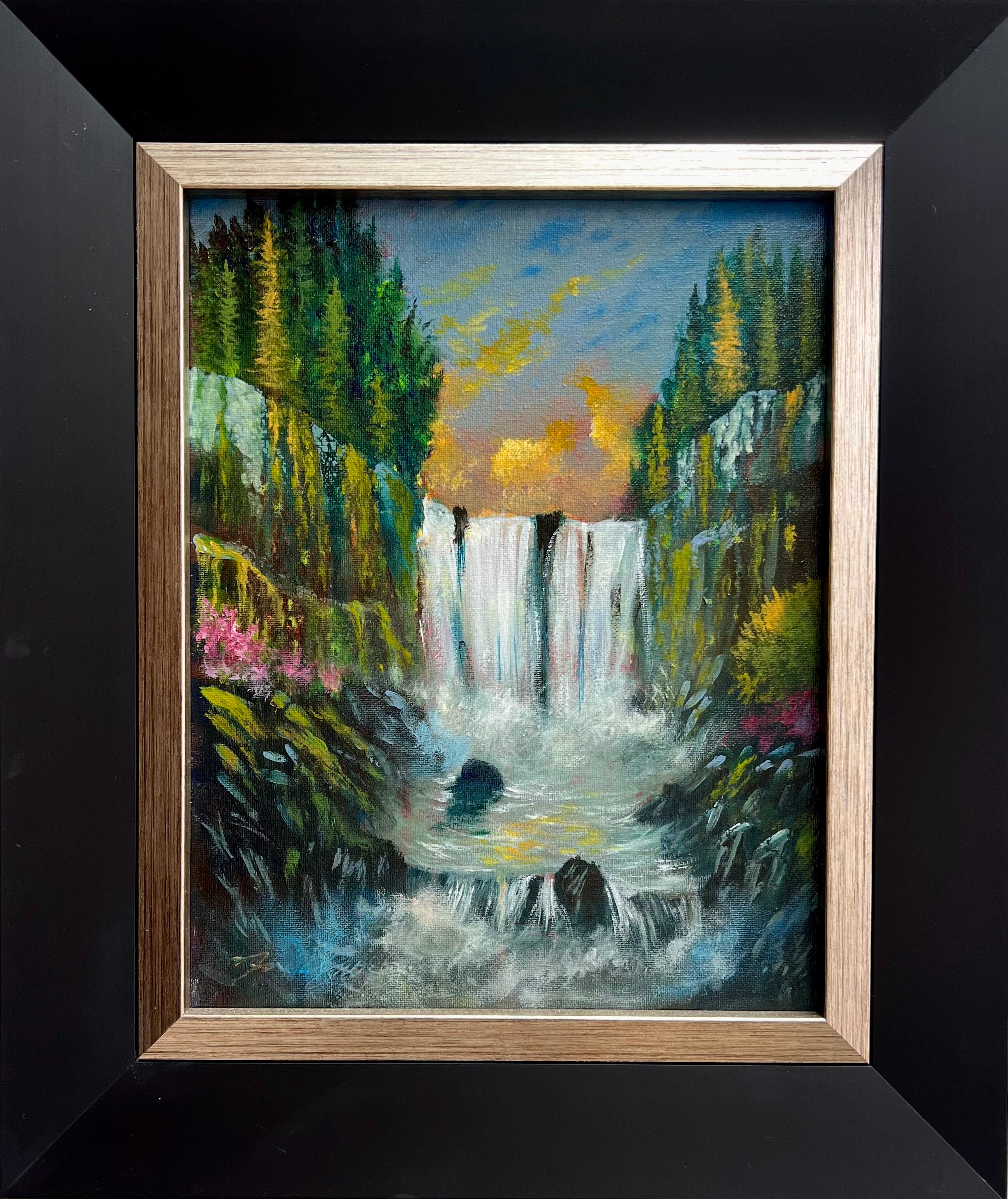 Falls at First Light captures the quiet magic of dawn as a hidden waterfall awakens beneath a glowing sky. In this luminous and intimate landscape, Ford celebrates the peaceful energy of nature and the promise carried in the first light of a new day.